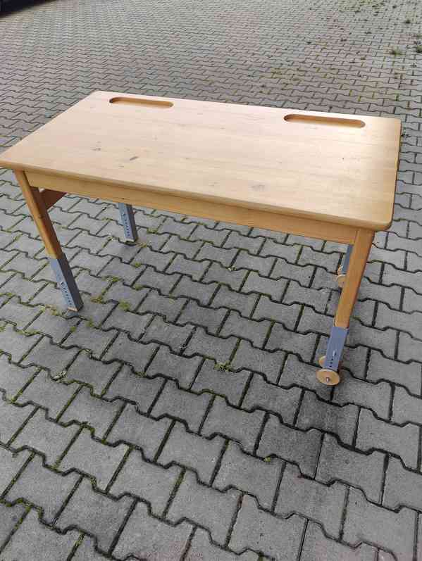 Prodám dětský rostoucí stůl v dřevěném dekoru. Rozměry: šířka 125 cm, hloubka 65 cm, výška aktuálně nastavena na 75 cm. Pouze osobní odběr.